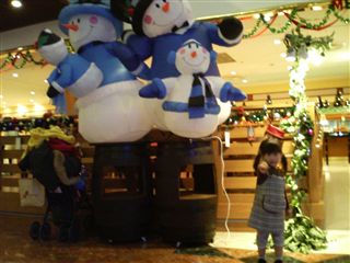 帰りにでっかいスノーマンとでっかいXmasツリーの前で、パチリ!!
