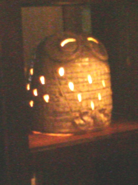 隣のテーブルとの間仕切り(棚のようになっている)にフクロウの形をした灯りが置いてありました。さっちゃんは、これが気になるようで、「あれ怖い〜!」と言いながらも、食事に夢中でした。
