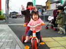 今日は、ママがお出かけなので3人で散歩に出かけました。さっちゃんが三輪車で元気良く楽しんでいたのも束の間、すぐに飽きてしまったので、次はkanaの出番とばかりに乗せてみたら、ご覧のとおり!