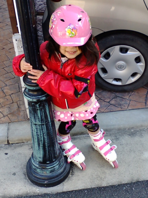 義兄から、なんとローラーブレードを頂きました。早速、さっちゃんチャレンジ!!まだ、4歳児には早いと思ってましたが、数分で(こけながら)歩けるようになりました。ちゃんと滑れるまでには、まだまだ時間と(特に)根気が必要でしょうが・・・・・