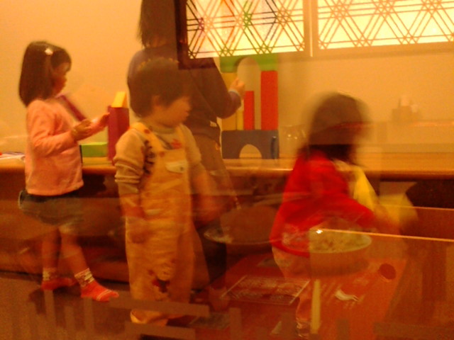 店内に入ると、一画にオモチャやテレビのあるチャイルドルームがありました!壁がガラス張りになっているので、(座敷の)テーブル席から丸見え。sachikanaは、すかさず積木遊びに夢中・・・・・・・