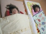 寝ているのに、かなちゃんが右を向けば、さっちゃんも右を向きます!!??まさに一心同体?