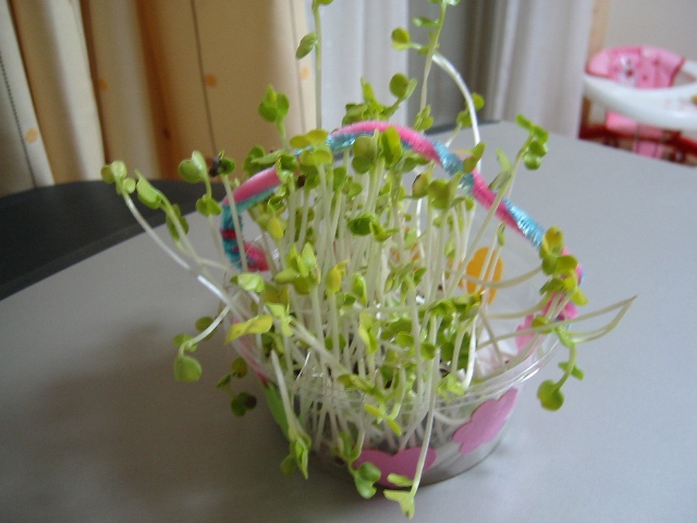 1週間後、にょきにょき伸びてきました。そろそろ、食べごろかな?