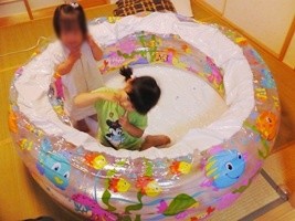 もう梅雨突入で、すっかりむし暑くなったので、家庭用のプールを見にいきました!去年は、近く(長久手)の公園の川で水遊びやりたい放題だったので、プールも要りまんせんでしたが、こっちでは(公園はあるものの)そうはいきません。ちょうど、wooddeckを作ったので、そこに入るぐらい と思い、探しに探して、やっと小さなプールをGETしました。でも、案外種類が無くて、結局妥協したという感じ。(-_-;)