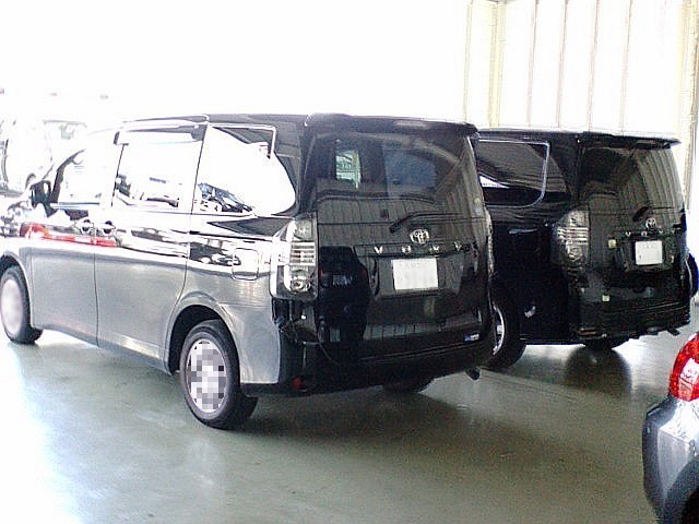 バックモニター.....09/14(sun)VOXYを購入以来、ずっとカーナビのDVDの調子が悪く、とうとう作動しなくなり、おまけに取り出しもできなくなったので、netzへ文句を言うと、メンテナンス品(半新品)に交換してくれるというので、早速取り替えに・・・・・ところが、DVDは直ったものの、バックモニターのガイドラインがハンドルと連動しなくなったので、再びnetzへ。どうもモニターの初期設定をしていなかったのが原因だったよう。・・・で、実際に車庫入れしてみると、ガイドラインが中心から、かなりずれていました。 またまたnetzへ行き文句を言うと、原因がわからないとのことで、他のVOXYを並べて見比べて見ることに・・・それでも原因わからないので、本体の初期設定をやり直すと、やっと正常な画面に戻りました。何か設定が抜けていたようです。netzもこんな適当では困りますね。 |
