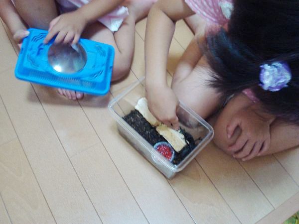 カブトムシのオスがとうとう死んでしまいました。餌のゼリーがちょうど無くなってしまったせいか・・・本当によく食べる奴でしたが・・・・メスはまだまだガンバッテます♪ |