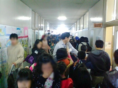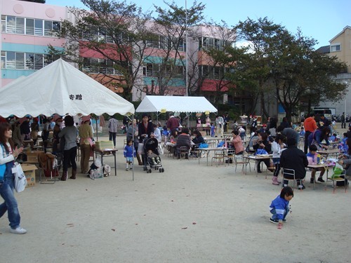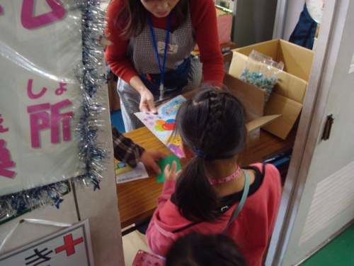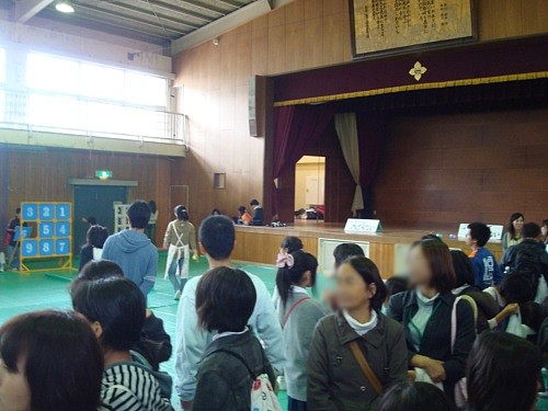 病院の帰りに小学校に直行!台風接近(雨は降ったり止んだり)で催し物は全て屋内になってしまったようで、校舎内は1〜3階まで大繁盛!というより超満員!