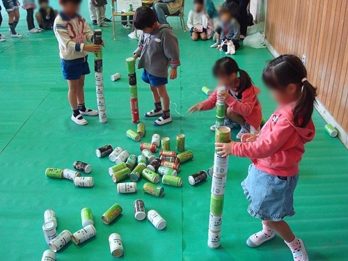 カンカン積み、カナが結構積み上げましたが最後に倒れてしまいました