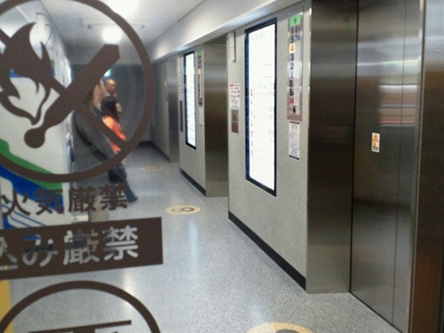 駐車場階にエレベーターがなかなか到着しないので、階段で降りようと思ったのですが、階段は無いそうです。