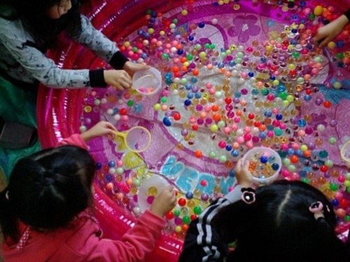 スーパーボールすくいは、さっちゃんが、紙が破れているのに反則すくいをしていました!