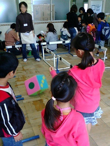 さっちゃんの残り競技は「たま入れ」だけです。欲張りさっちゃんは、両手にたくさん玉を持って投げるので、網まで届かず苦戦!でも、1個だけ入ったそうで、勝敗は引き分けでした!!
