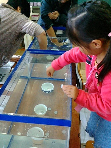 まってました!カナの好きな1円玉落とし!でも今回は不調でひとつも入らず