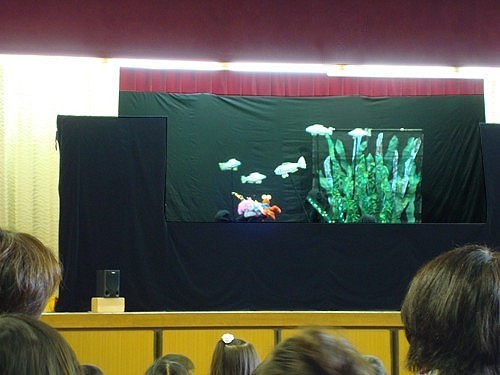 カナはホールで人形劇を見ます。さっちゃんも見たい〜ということで、一緒に見ることに(パパは爆睡でしたが)