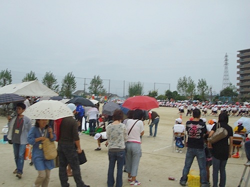とうとう、雨がふってきました(T_T)結局、午前の途中で、運動会は延期になってしまいました。