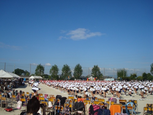 今日は、週間天気予報では雨でしたが朝はなんとなく曇の間から晴れ間が・・・でも今日一日はもちそうにもなく、途中中止が濃厚。・・と運動会は始まったものの、案の定、昼前に雨がポツリポツリ降り出し、午前中で中止になり、午後の競技は6日に延期とのこと。ならば、最初から6日に延期にすれば良いのに!っと思いながらも、2回開催された運動会でした。