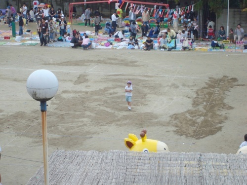 午前の途中で、競技が中断してしまったので、さっちゃんが出場するはずのかけっこが無くなってしまいました。
