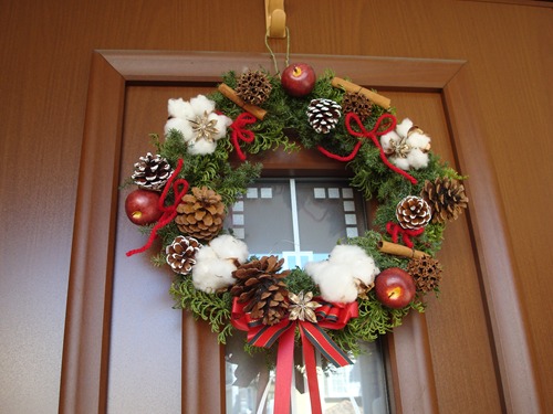 ママが、小学校で作ってきた自作のクリスマスリースです!