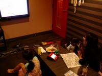 部屋はすでに満室で、大部屋しか空いてなかったので、広々と楽しめました!久しぶりで最初遠慮していたサチカナも途中からノリノリで歌いまくり!!特にさっちゃんは最高得点も出して超満足!明日も行きた〜い!とか、カラオケ大会はないの?とか、大はしゃぎ!でも、その横であまり歌がわからないカナは力尽きて爆睡状態!!さっちゃんの歌が子守唄に聞こえるのでしょうか!?
