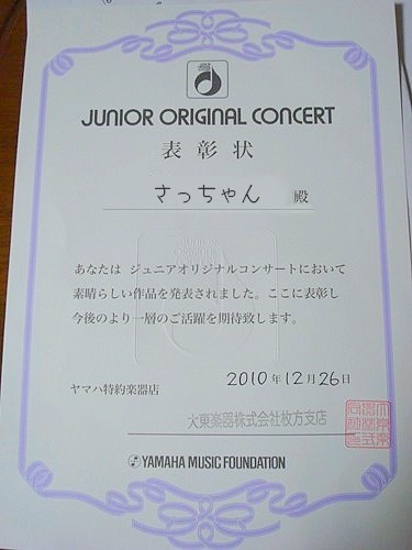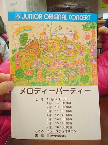 今日は、ヤマハ音楽教室 枚方支部のクリスマスコンサートがありました。これは、さっちゃんの習っている教室以外の生徒も集まるので、枚方の「ミューズデュオ」で行われました!曲はヤマハのレッスンとは関係なく、自分の好きな曲を選択できます。ちなみにさっちゃんは、嵐の「MONSTER(モンスター)」をチョイス!!