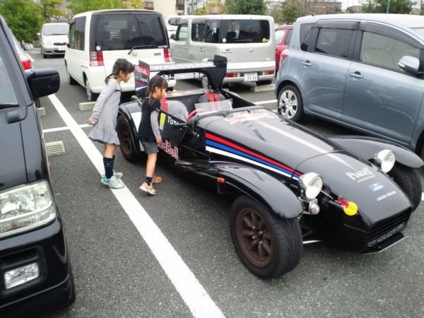 帰りに中央図書館に寄るとオープンカーが止まっていました!サチカナ興味津々!