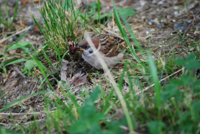こんな実がたくさん生っていてスズメが美味しそうにたべていました!