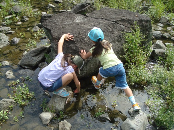 サチカナも早速、川遊び!