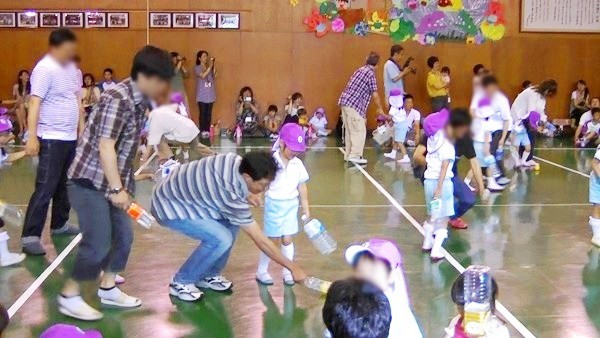 今日は、カナの幼稚園最後の参観日です。最初はホールでペットボトルホッケーで汗を流し、次は教室に入り、ゲーム&プレゼントタイム&歌でプレゼントをもらいました!