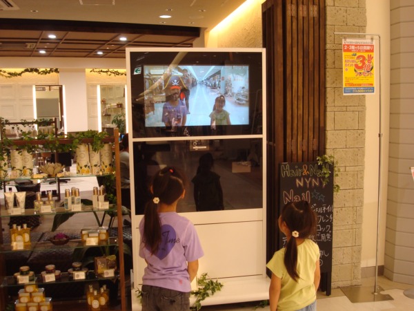 今日は、住道の京阪百貨店に行きましたが、面白いテレビを発見しました!人の顔を検知して、(画面に)目玉を付けたり、ヒゲを付けたり、アフロヘアーにしたり・・・・更には、人の動きに反応して炎を出したりといろいろ楽しませてくれます!