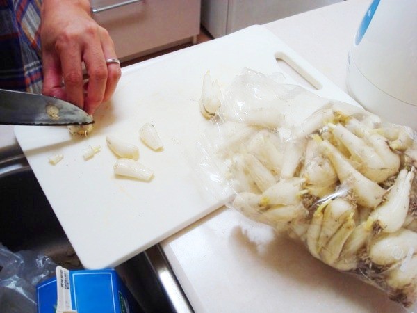 今日は、島根の土らっきょうを買ってきました。はな切りをして塩付けした後、酢に漬け込みます。10日ぐらいで食べられるようです。