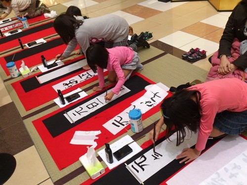 久御山のイオンに行ったときに、催事場で書初めをやっていました。
