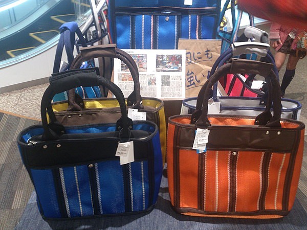 ホースを再利用したgoodsがいろいろ展示されていました。