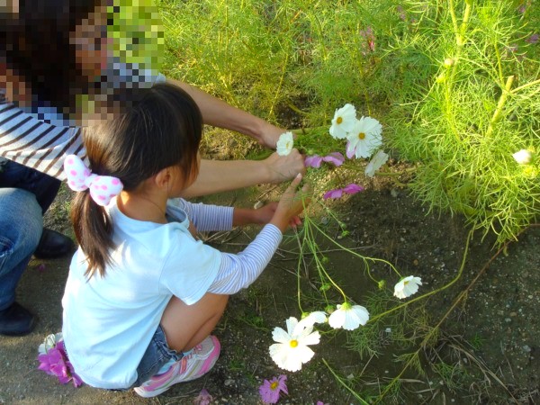 コスモスは10本で100円、ひまわりは3本で100円になります(安いですね)