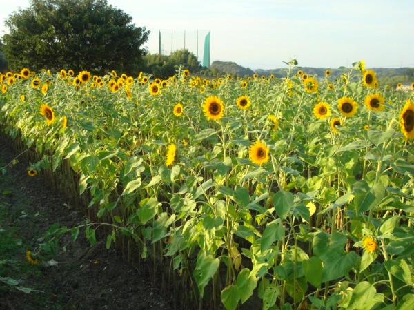 ひまわりはみんな東を向きます(知ってましたか??)!反対側から撮影すると、みんな後ろ向きになってしまいます(>_<)