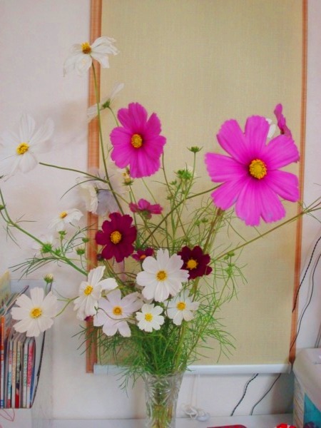 摘み取ったコスモスは、リビングに飾ってみました!!