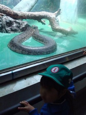 室内にいたのは大蛇です。ビビリのカナは怖そうでたまりません。