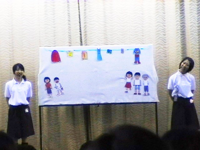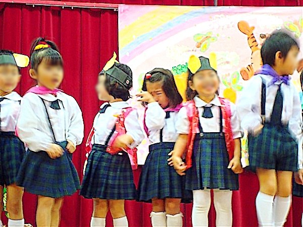 ところが、劇の途中でハプニングが・・・・!隣の子の手がカナの目に当たったようで、カナが泣き出してしまいました。そんなに痛くないはずなのに、ブルーな気分は回復せず、結局後半はずっと半ベソをかいていました。