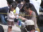 牛乳パックの動物と、ビニール袋のウサギさんを作ってから、指輪を作りに行くと「もう終わりで〜す」と先生から時間オーバーを告げられてしまいました。(ショック)・・・で、園庭に出ると、kanaはsachiそっちのけで(一人で)遊び出しましたが、もう時間も遅くみんな片付け始めていました。一人で遊ぶなら、プールの時も遊んでほしいものですが、なかなか複雑のようです。