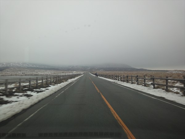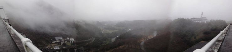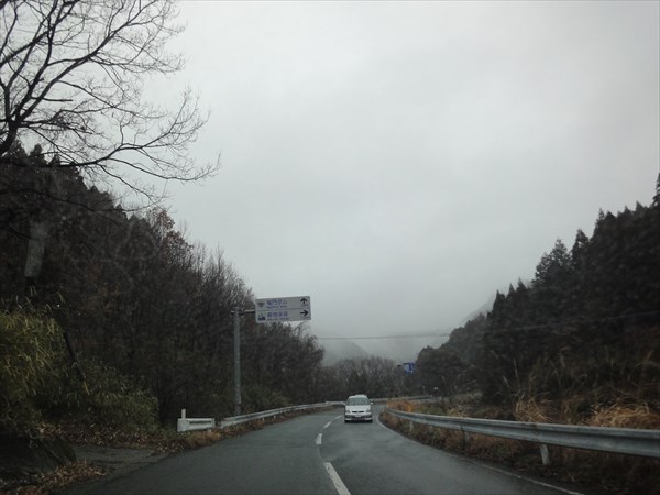 阿蘇の外輪山の中を走っていますが、空が灰色になってきました