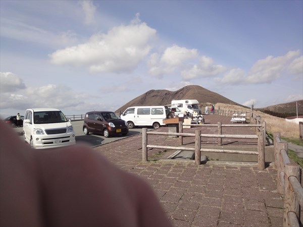 いつもの草千里に到着(手が写ってしまいましたm(_ _)m)