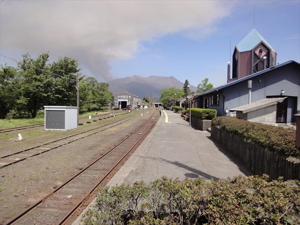 駅の後ろには黒煙が・・・