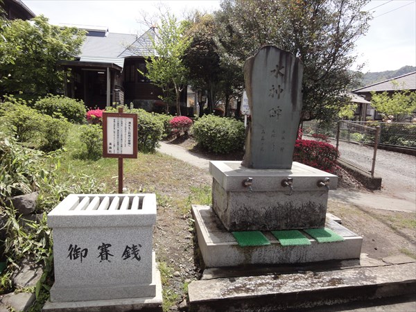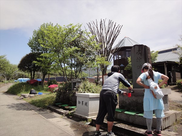 湧水が出ています。横の賽銭箱に気持ち(お金)を入れて水をもらいます