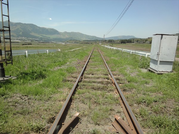 途中、南阿蘇鉄道の線路がまっすぐ(絵になりますねー)