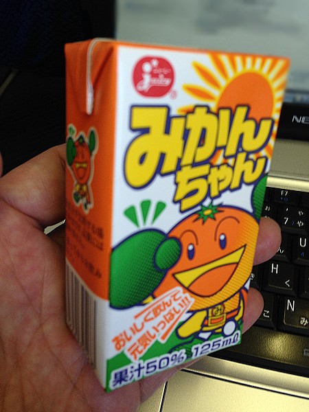 この飛行機に乗ると、みかんとミカンジュースをくれます。