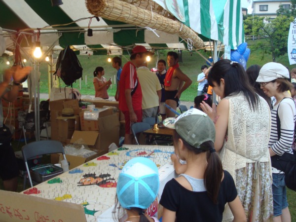 お次は、カナが好きな十円玉落とし。今回は、さっちゃんが入りました