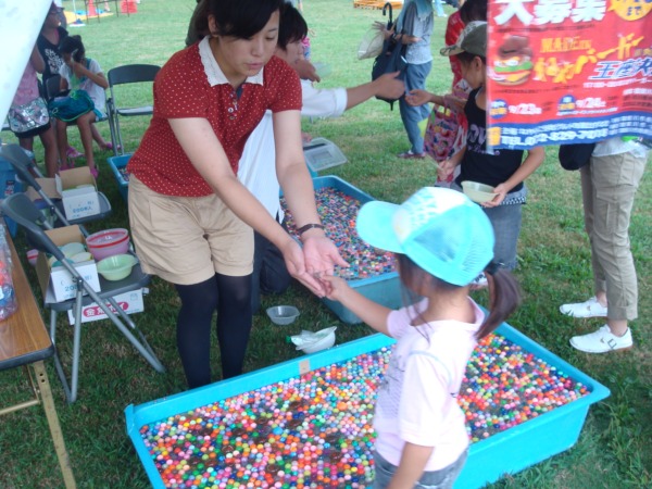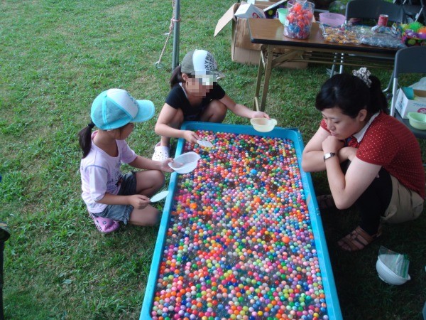 サチカナは雨でも関係ありません。まずは、お小遣いでスーパーボールすくいからスタート!