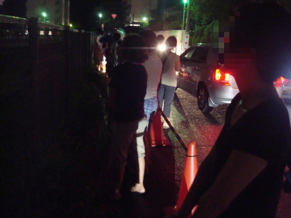 TV局が来ています。雨が降っているので、カメラを隠しながらの撮影です