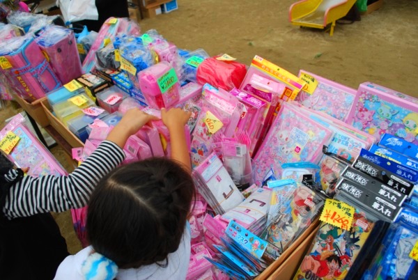 今日は、来年から小学生になるすみれ組さんのために、文具やランドセルの販売があります。勿論、小学生のさっちゃんも購入することができます!