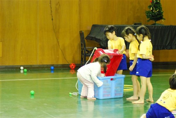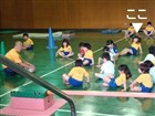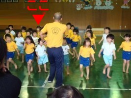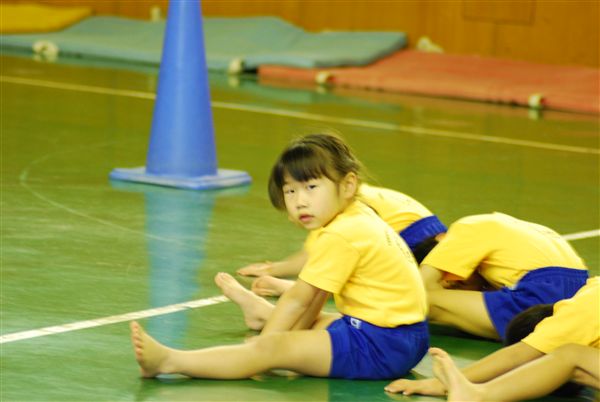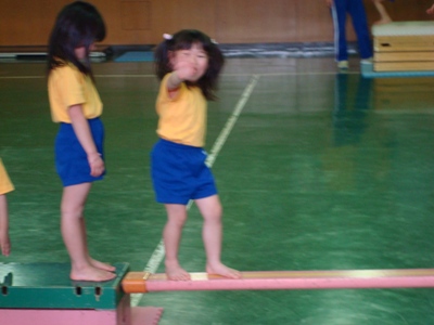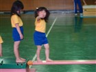今日は、週末のスポーツ教室です。○口先生の号令で、平均台・前まわり・滑り台・ボール投げ・ジャンプ・跳び箱の障害物競争みたいなのをやってました。去年も同じようなことをしていたような気もするけど・・・・もう少し目新しい内容もないものか。何となく、マンネリ化して活気がないような・・・・・でもsachiは、ほっぺた真っ赤にして、はしゃいでいたので楽しいようです。。。。最後は、エビカニ体操で締めくくり!sachiは、一番後ろにいます。わかりますか〜!?