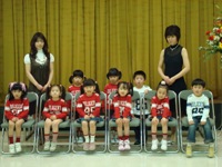 今日は、歌とメロディオンの発表会です!いつもなら、愛想がいいのに今日はちょっと緊張気味!?1曲目は「おばけなんてないさ!」で、〜ぼ−くだってこわいな〜と、振り付けもOk!2曲目の「くじらの時計」も踊りに合わせて無難に歌ってました。最後のメロディオンは、手元がよく見えなかったけどうまく弾けたかなっ!で、、、演奏が終わったらメロディオンを持って一目散に退場・・・・・・恥ずかしいのかい????