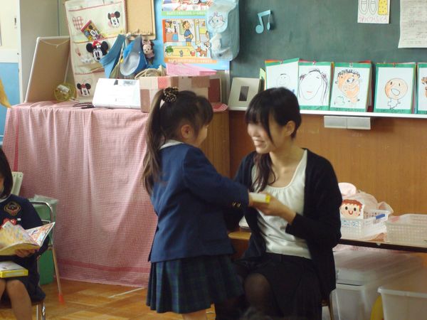 名前を呼ばれて、相変わらず照れまくりのさっちゃんは新しいゆり先生にギュウっとされていました!